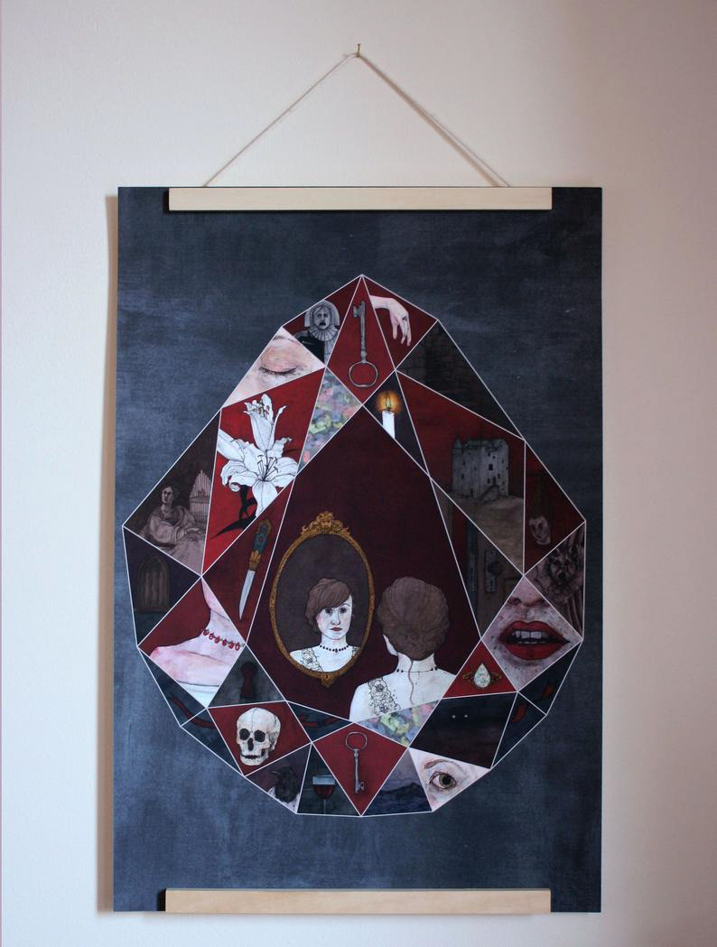 Digital print of an illustration based on the short story 'The Bloody Chamber' by Angela Carter.