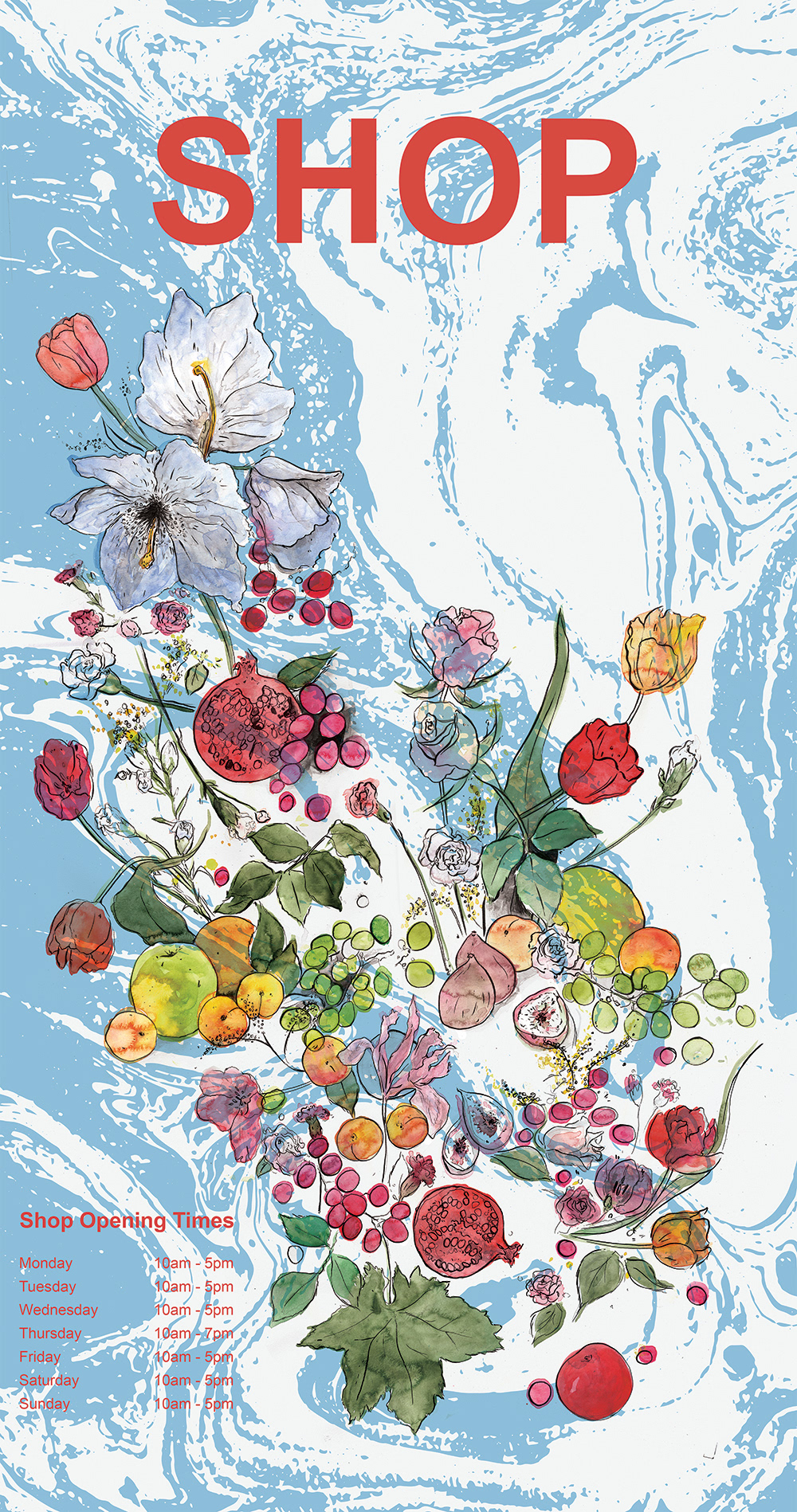 Two window vinyls designed to advertise a small shop in the National Galleries Scotland. One inspired by the fruits + flowers of Caravaggio but designed with a summer palette & the other a kaleidoscope of various products stocked by the shop. Both designs were installed on the shop window in 2017/2018.